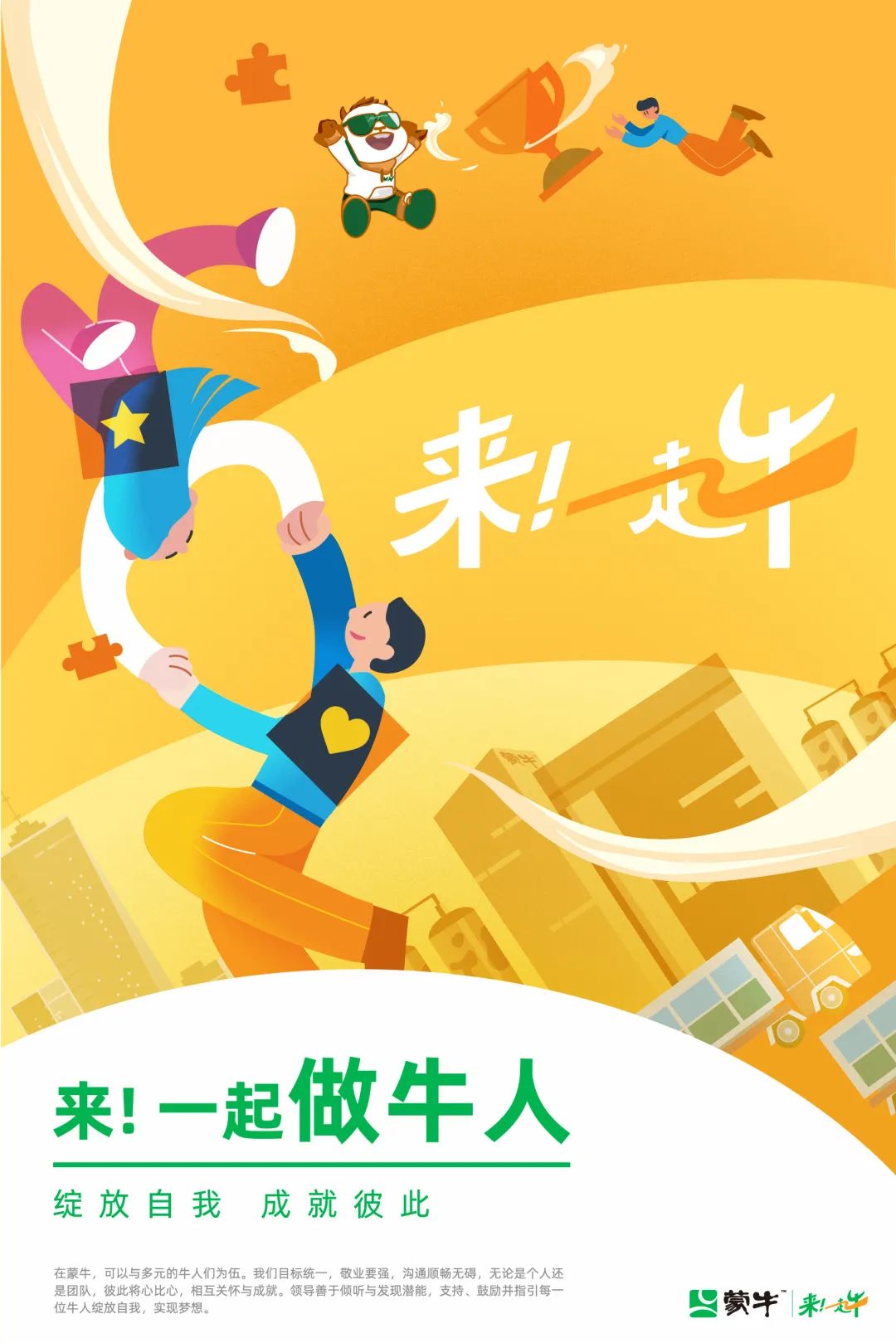 發(fā)表時間:2022-05-05 16:57作者:蒙牛集團(tuán) 蒙牛EVP ![]() 5月4日,蒙牛集團(tuán)攜手緯思文化發(fā)布了全球雇主品牌,以及“來!一起牛”的雇主價值主張(EVP)。恰逢五四青年節(jié),23歲的“青年”蒙牛發(fā)布的EVP,充滿激情與活力,也彰顯其對全球優(yōu)秀人才的期待和渴望:希望更多牛人加入蒙牛,一起去追求更牛的目標(biāo)。 EVP即雇主價值主張(Employer Value Proposition),是雇主為內(nèi)部員工和外部人才,承諾其工作價值和職業(yè)發(fā)展的一種綜合表述。 蒙牛此次發(fā)布的EVP“來!一起牛”,既表達(dá)了其對人才的迫切渴望和歡迎,也彰顯蒙牛與員工間的彼此吸引與雙向奔赴,期待并肩奮斗、攜手共創(chuàng)、一同分享成果與喜悅,共同抵達(dá)更美好的未來。 自我綻放,成就彼此 一起做牛人! ![]() 在蒙牛,有許多職位、技能、性格各異的牛人們。例如,有提出高考奶、用牛奶修瓷碗的品牌創(chuàng)意型牛人,有搭建軟件架構(gòu)、加快產(chǎn)業(yè)數(shù)智化轉(zhuǎn)型的技術(shù)型牛人,有堪比“豌豆公主”、能試出奶牛睡的草軟硬是否合適的實干型牛人……無法一一列舉,但他們擁有共同的特征:天生要強,與自己較勁! 在企業(yè)精神的指引下,蒙牛持續(xù)招募和培養(yǎng)人才,形成了一整套人才的培養(yǎng)和交流體系。蒙牛針對打造領(lǐng)軍型管理人才、培養(yǎng)經(jīng)營型專業(yè)人才、成就拔尖型青年人才、激發(fā)突破型創(chuàng)業(yè)人才、儲備戰(zhàn)略型國際化人才、引入稀缺型高端人才等六大方面,具體推出了不同職業(yè)目標(biāo)的職場人的定位、培養(yǎng)方式和培養(yǎng)目標(biāo),期待為員工們提供更好的發(fā)展環(huán)境。 工作之外,蒙牛還將員工及其家庭的利益和幸福放在重要位置,不斷為員工提供人文關(guān)懷,營造出濃厚的關(guān)愛員工的企業(yè)氛圍,提高員工的歸屬感、幸福感與企業(yè)凝聚力。例如,蒙牛推出的“員工幸福計劃”,主要包括針對員工60歲以上父母的孝心計劃、周歲以內(nèi)子女的寶貝計劃、員工自身和子女的健康計劃,還有宿舍計劃、幫扶計劃、司齡計劃等。 新的牛人加入能讓蒙牛更牛,同時蒙牛也能為每一個員工賦能,讓牛人綻放更耀眼的光芒。 異想天開,挑戰(zhàn)新高 一起干牛事! ![]() 進(jìn)入蒙牛后,有無限的機會可以發(fā)掘。 乳業(yè),既肩負(fù)國計民生重任,又擁有廣闊的創(chuàng)新創(chuàng)造空間。作為中國領(lǐng)軍、世界一流乳業(yè)公司,蒙牛牢記“點滴營養(yǎng),綻放每個生命”的使命,堅守“奶以安為要”的底線不動搖,在此基礎(chǔ)上,積極進(jìn)行技術(shù)、產(chǎn)品、品牌等方面的創(chuàng)新。 例如,蒙牛長期深耕奶業(yè)關(guān)鍵技術(shù)的基礎(chǔ)研發(fā),其參與的“奶及奶制品安全控制與質(zhì)量提升關(guān)鍵技術(shù)”榮獲2020年度國家科學(xué)技術(shù)進(jìn)步獎,這是中國科技界的最高榮譽。 然而,蒙牛并不滿足于此,依然追求突破和創(chuàng)新,希望全球更多牛人加入蒙牛,一起做到更好。近年來,蒙牛通過開展“創(chuàng)新加速營”“牛客松”等項目培育、引進(jìn)內(nèi)外部專業(yè)團(tuán)隊,打造研發(fā)創(chuàng)新的主力軍,還舉辦“創(chuàng)新大賽”等文化活動,宣貫“異想才能天開”的價值觀,鼓勵廣大員工開展多領(lǐng)域自主創(chuàng)新。 無論是掌握科研能力、想要挑戰(zhàn)更加智能化場景搭建的牛人,還是異想天開、品牌創(chuàng)意無限的牛人,蒙牛都鼓勵員工保持好奇心,敢想敢拼,挑戰(zhàn)新高。 多贏共好,天穹方盡 一起犇未來! ![]() 作為一家國際化的乳業(yè)龍頭企業(yè),23歲的蒙牛還正于青年期,未來無限美好,并希望與牛人們共同創(chuàng)造。而在充滿活力、創(chuàng)造力的企業(yè)中,牛人們也能相互勉勵,共同進(jìn)步,為蒙牛、為中國乳業(yè),創(chuàng)造更美好的未來。 2021年,蒙牛錨定國家“十四五”規(guī)劃,提出“再創(chuàng)一個新蒙牛”戰(zhàn)略目標(biāo),致力于成為消費者至愛的蒙牛、國際化的蒙牛、更具責(zé)任感的蒙牛、文化基因強大的蒙牛和數(shù)智化的蒙牛。 未來,蒙牛將持續(xù)利用品牌、渠道、產(chǎn)品、創(chuàng)新、文化等多維體系,繪制“世界牛”新藍(lán)圖,引領(lǐng)中國乳業(yè)走向世界。 蒙牛和牛人們擁抱變革,擁抱不確定性,同時堅定相信美好的未來,為此一起共創(chuàng)、共同決策,每個人都有發(fā)聲、發(fā)揮的機會。 蒙牛期待更多人才加入 一起去追求更牛的目標(biāo) 來!一起牛! ![]() 緯思文化為客戶提供更多雇主品牌咨詢及EVP搭建服務(wù),如有興趣了解更多,歡迎留言或郵件我們:ocean.fu@ebwings.com。 ![]()